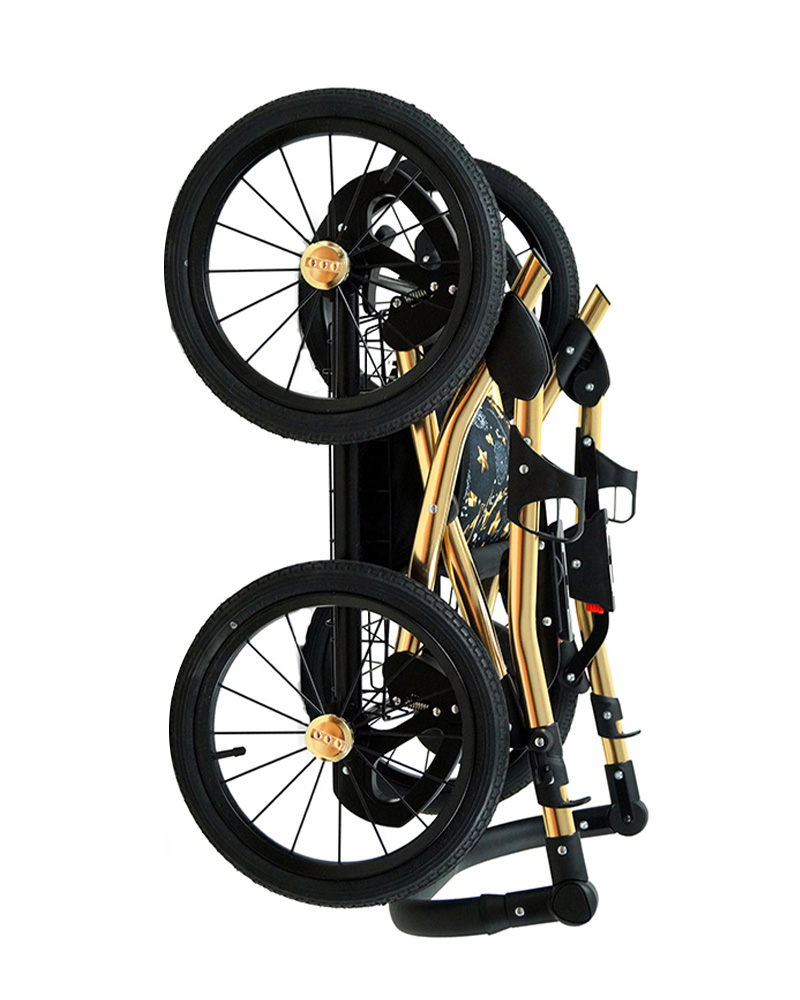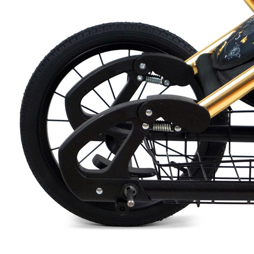 Konstrukcja wózka została wykonana lekkich aluminiowych profili eliptycznych, natomiast za płynne poruszanie się wózka odpowiadają duże 14 calowe łożyskowane koła z oponką pompowaną.