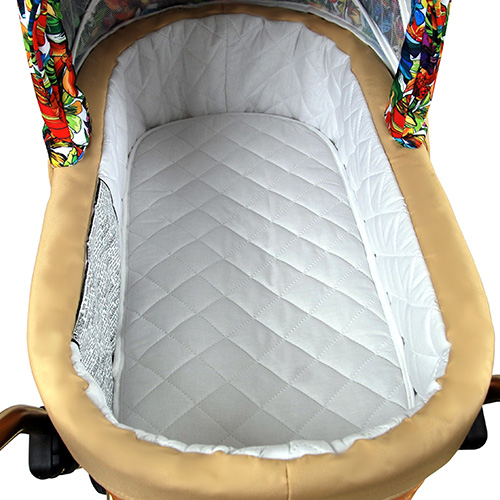 Ekskluzywne tkaniny zapewniają także podróżującemu dziecku idealną temperaturę oraz wilgotność powietrza niezależnie od panujących warunków atmosferycznych.